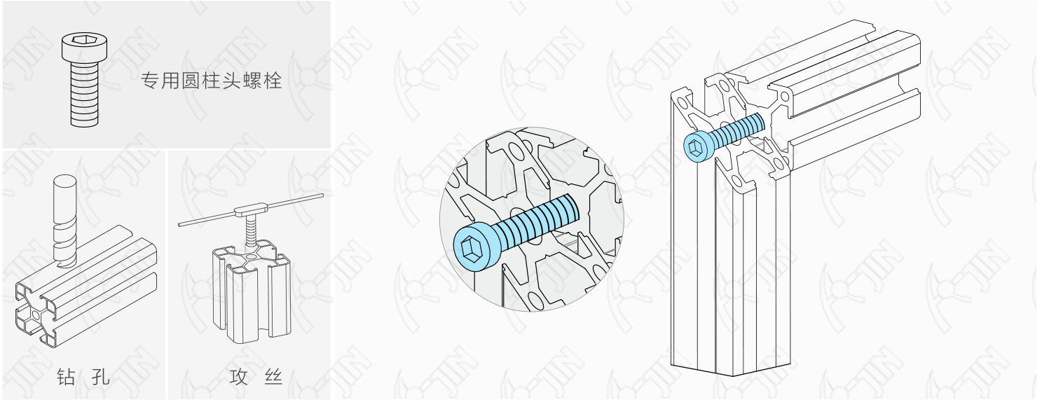 • 螺母的孔徑或螺栓的直徑需小于或等于型材槽寬