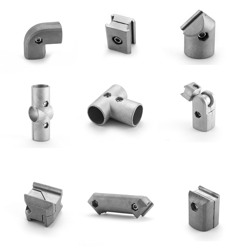 以上產(chǎn)品分別有:精益管、90度直角連接件、 固定底座、角度斜支撐、平行緊固件、球形任意角件連接件、四通連接件、外45度角緊固件、三通連接件。