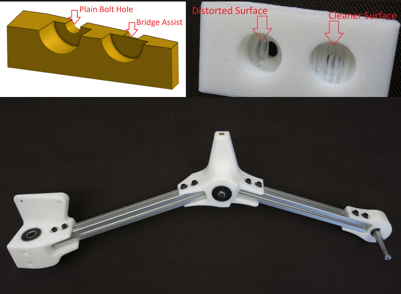 還有一點(diǎn)需要考慮的是,當(dāng)螺栓孔不能很好地與印刷床對齊時(shí),會(huì)突出。我們可以通過創(chuàng)建覆蓋螺栓孔的薄層(2-3層高度厚)來幫助我們的打印機(jī)橋接奇怪的螺栓頭表面,該螺栓孔可以在用于其目的之后通過鉆機(jī)清理。與典型的打印支持解決方案相比,這些打印機(jī)更容易拆卸并消耗更少的材料。