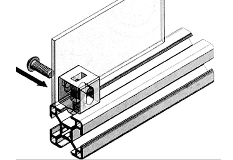 將此連接塊尾端直接插入型材槽坑內(nèi),轉(zhuǎn)動90度后即緊密固定在型材上,然后就可在型材上安裝有機玻璃等各種面板,再用螺栓鎖緊,安裝簡潔,拆卸方便。