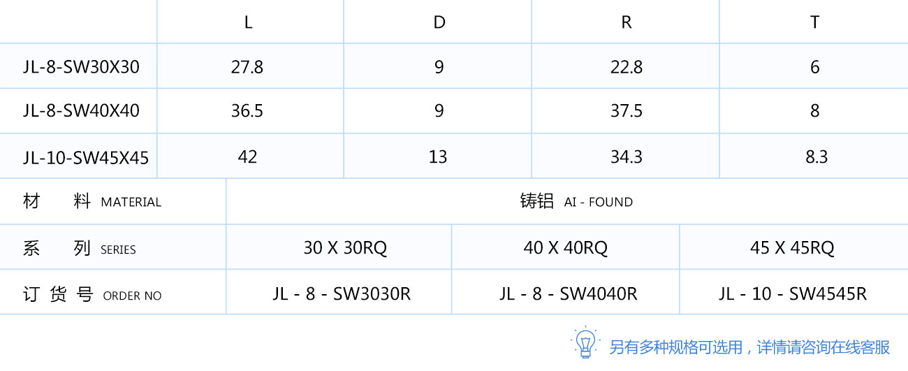 這種角連接是半圓形型材的專(zhuān)用連接件,它能把兩根或三根型材連接在一起,加之配套的蓋板,十分簡(jiǎn)潔美觀(guān)。連接螺栓需另配。
