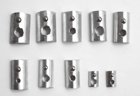 彈性螺母塊能被直接塞進(jìn)鋁型材槽坑中的任意裝配點(diǎn),他背部的彈簧鋼球能固定它的位置,使安裝十分簡(jiǎn)單且可靠,它是型材連接中使用較多的配件之一。