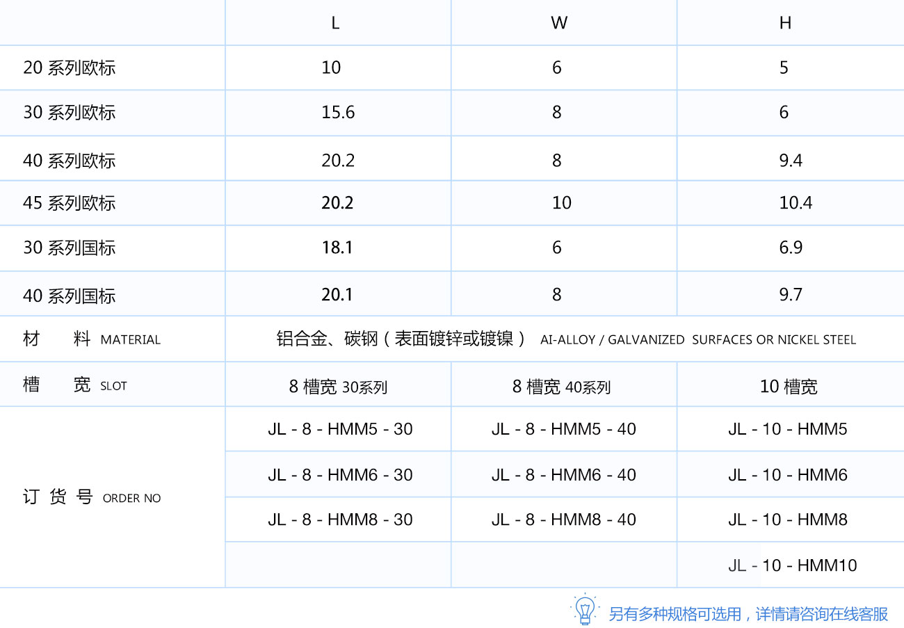 滑塊螺母安裝時需預(yù)塞至型材槽坑內(nèi),便于在型材上連接各種配件。