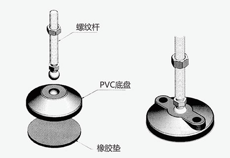 蹄腳是各種工業(yè)鋁型材支架及設(shè)備通用的配件,具有支撐、防震等作用,螺桿可調(diào)節(jié)高度。