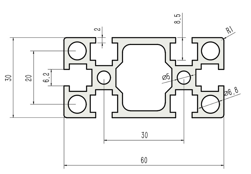 適用于應(yīng)力及強(qiáng)度較大的框架組合結(jié)構(gòu),它的外型采用直角過渡,表面經(jīng)過陽極氧化處理,高雅美觀并抗腐蝕,它通常采用M6X20高強(qiáng)度專用螺栓的內(nèi)部連接方式,堅(jiān)固而又可靠,是工業(yè)框架應(yīng)用較為廣泛的型材之一。