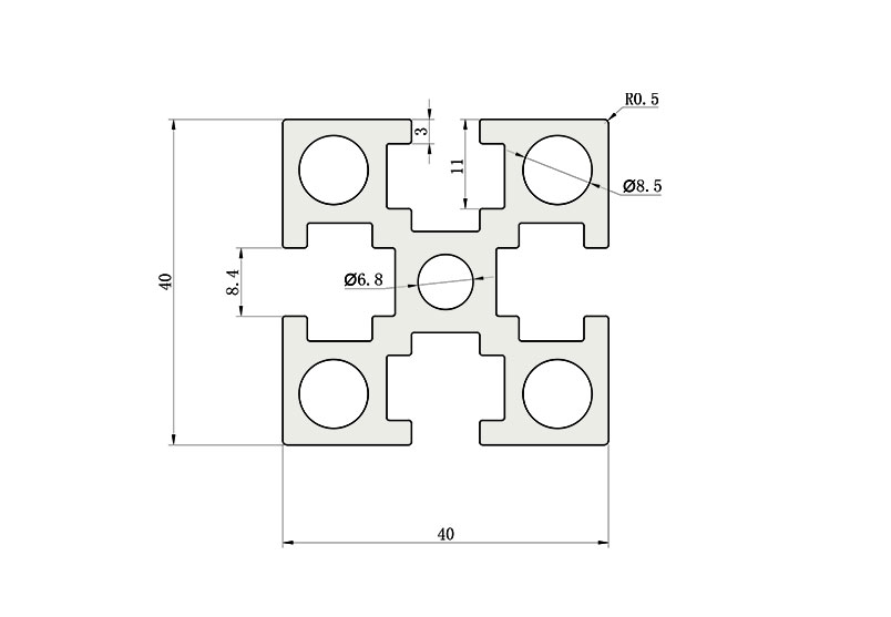 適用于應(yīng)力及強(qiáng)度較大的框架組合結(jié)構(gòu),它的外型采用直角過(guò)渡,表面經(jīng)過(guò)陽(yáng)極氧化處理,高雅美觀并抗腐蝕,它通常采用M6X20高強(qiáng)度專用螺栓的內(nèi)部連接方式,堅(jiān)固而又可靠,是工業(yè)框架應(yīng)用較為廣泛的型材之一。