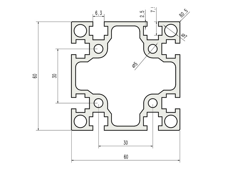 適用于應(yīng)力及強度較大的框架組合結(jié)構(gòu),它的外型采用直角過渡,表面經(jīng)過陽極氧化處理,高雅美觀并抗腐蝕,它通常采用M6X20高強度專用螺栓的內(nèi)部連接方式,堅固而又可靠,是工業(yè)框架應(yīng)用較為廣泛的型材之一。