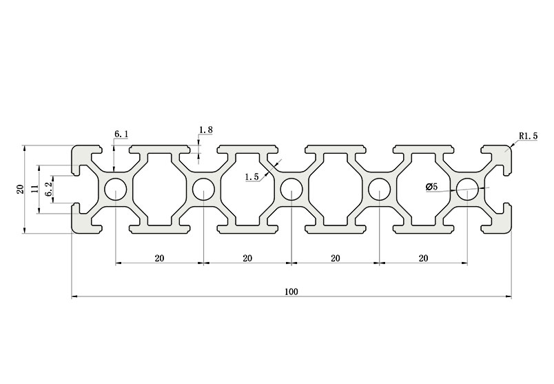 外形采用圓角過(guò)渡,表面經(jīng)過(guò)陽(yáng)極氧化處理,高雅美觀并抗腐蝕,通常采用M6X20高強(qiáng)度專(zhuān)業(yè)螺栓加彈性扣件的內(nèi)部連接方式,是工業(yè)鋁型材框架應(yīng)用較為廣泛的型材之一。