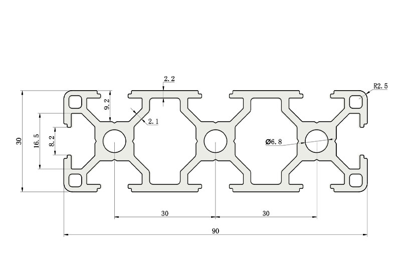 適用于應(yīng)力及強(qiáng)度較大的框架組合結(jié)構(gòu),它的外型采用圓角過渡,表面經(jīng)過陽極氧化處理,高雅美觀并抗腐蝕,它通常采用M8X20高強(qiáng)度專用螺栓加彈性扣件的內(nèi)部連接方式,堅(jiān)固而又可靠,是工業(yè)框架應(yīng)用較為廣泛的型材之一。