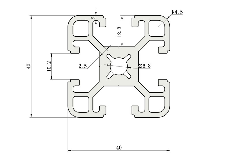 適用于應(yīng)力及強度較大的框架組合結(jié)構(gòu),它的外型采用圓角過渡,表面經(jīng)過陽極氧化處理,高雅美觀并抗腐蝕,它通常采用M8X20高強度專用螺栓加彈性扣件的內(nèi)部連接方式,堅固而又可靠,是工業(yè)框架應(yīng)用較為廣泛的型材之一。