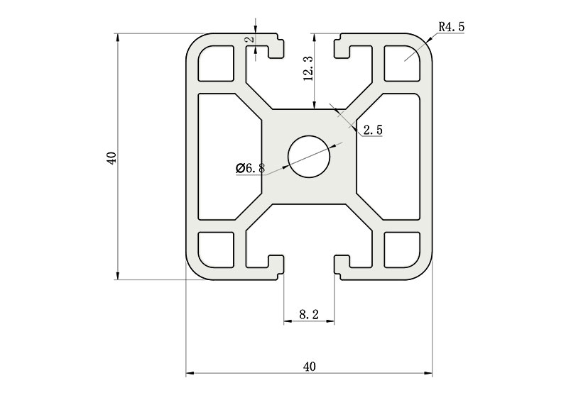 適用于應(yīng)力及強(qiáng)度較大的框架組合結(jié)構(gòu),它的外型采用圓角過(guò)渡,表面經(jīng)過(guò)陽(yáng)極氧化處理,高雅美觀并抗腐蝕,它通常采用M8X20高強(qiáng)度專用螺栓加彈性扣件的內(nèi)部連接方式,堅(jiān)固而又可靠,是工業(yè)框架應(yīng)用較為廣泛的型材之一。
