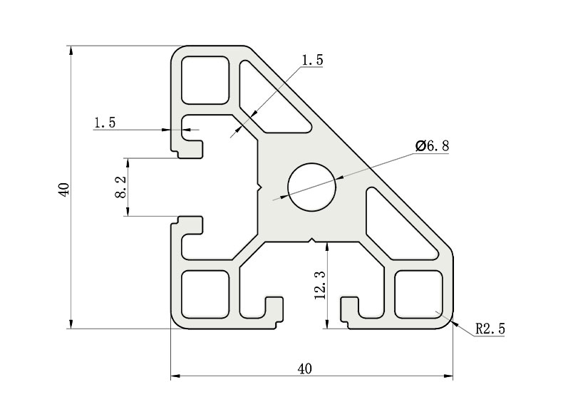 適用于應(yīng)力及強(qiáng)度較大的框架組合結(jié)構(gòu),它的外型采用圓角過(guò)渡,表面經(jīng)過(guò)陽(yáng)極氧化處理,高雅美觀并抗腐蝕,它通常采用M8X20高強(qiáng)度專用螺栓加彈性扣件的內(nèi)部連接方式,堅(jiān)固而又可靠,是工業(yè)框架應(yīng)用較為廣泛的型材之一。