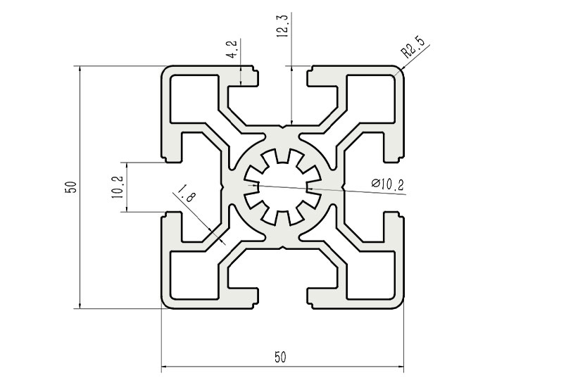 適用于應(yīng)力及強度較大的框架組合結(jié)構(gòu),它的外型采用圓角過渡,表面經(jīng)過陽極氧化處理,高雅美觀并抗腐蝕,它通常采用M12X30高強度專用螺栓加彈性扣件的內(nèi)部連接方式,堅固而又可靠,是工業(yè)框架應(yīng)用較為廣泛的型材之一。