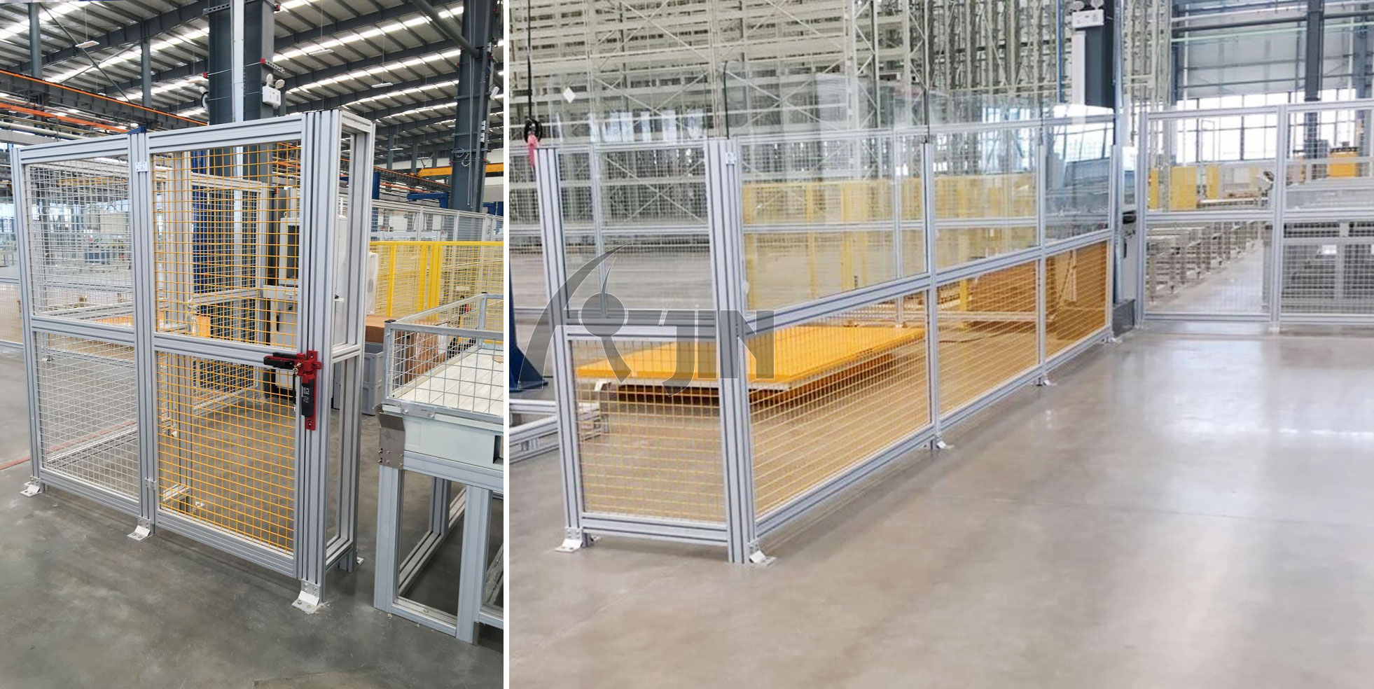機(jī)械防護(hù)主用采用網(wǎng)和板兩種形式,常用于機(jī)器人外圍防護(hù)、汽車生產(chǎn)車間外圍防護(hù)、機(jī)械設(shè)備外圍防護(hù)等,可有效地保護(hù)設(shè)備,保障安全生產(chǎn)。